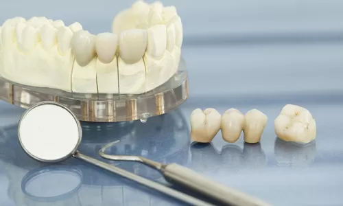 Bridges are fixed or non-removable prosthesis constructed to replace one or more missing teeth. Either one or both teeth adjacent to the space are used to anchor the bridge to restore function as well as aesthetics. Like crowns, bridges can be made of porcelain bonded to metal or all ceramic. Because there is interference with the adjacent teeth, more and more people are opting for Dental Implants as an alternative to sacrificing sometimes healthy teeth.